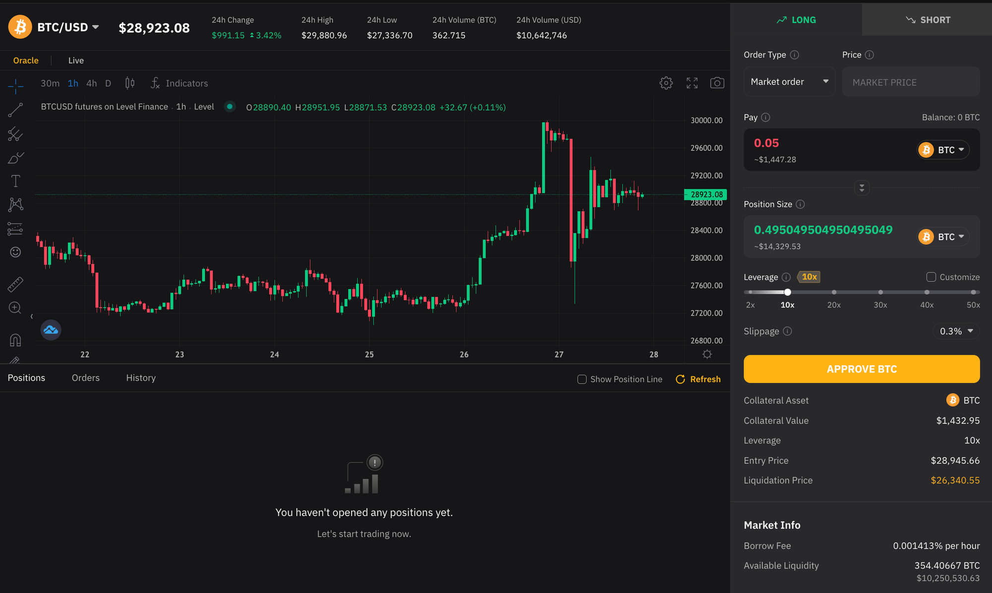 💡 Trade with leverage on LEVEL [here](https://app.level.finance/trade/btc/long)