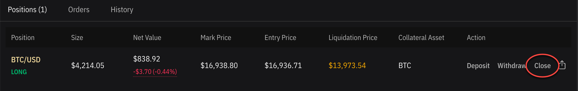 A position can be closed by clicking on ‘Close’ in your Positions list.